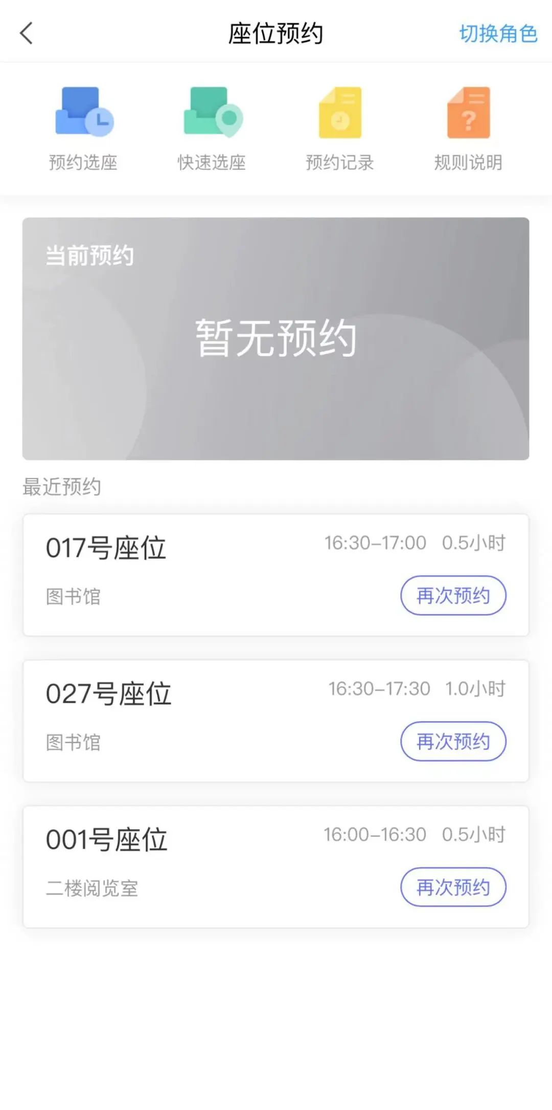 3、使用要预约,预约要签到,离座要暂离,用完要退座。详细规则见“座位预约”首页“规则说明”。