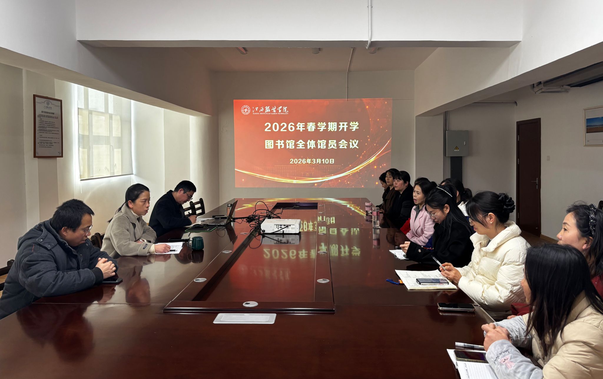3月10日下午,图书馆召开2026年春学期全体馆员会议,传达学校干部教师大会精神,总结2025年工作成效,部署2026年重点任务。会议由副馆长兰志玲主持。