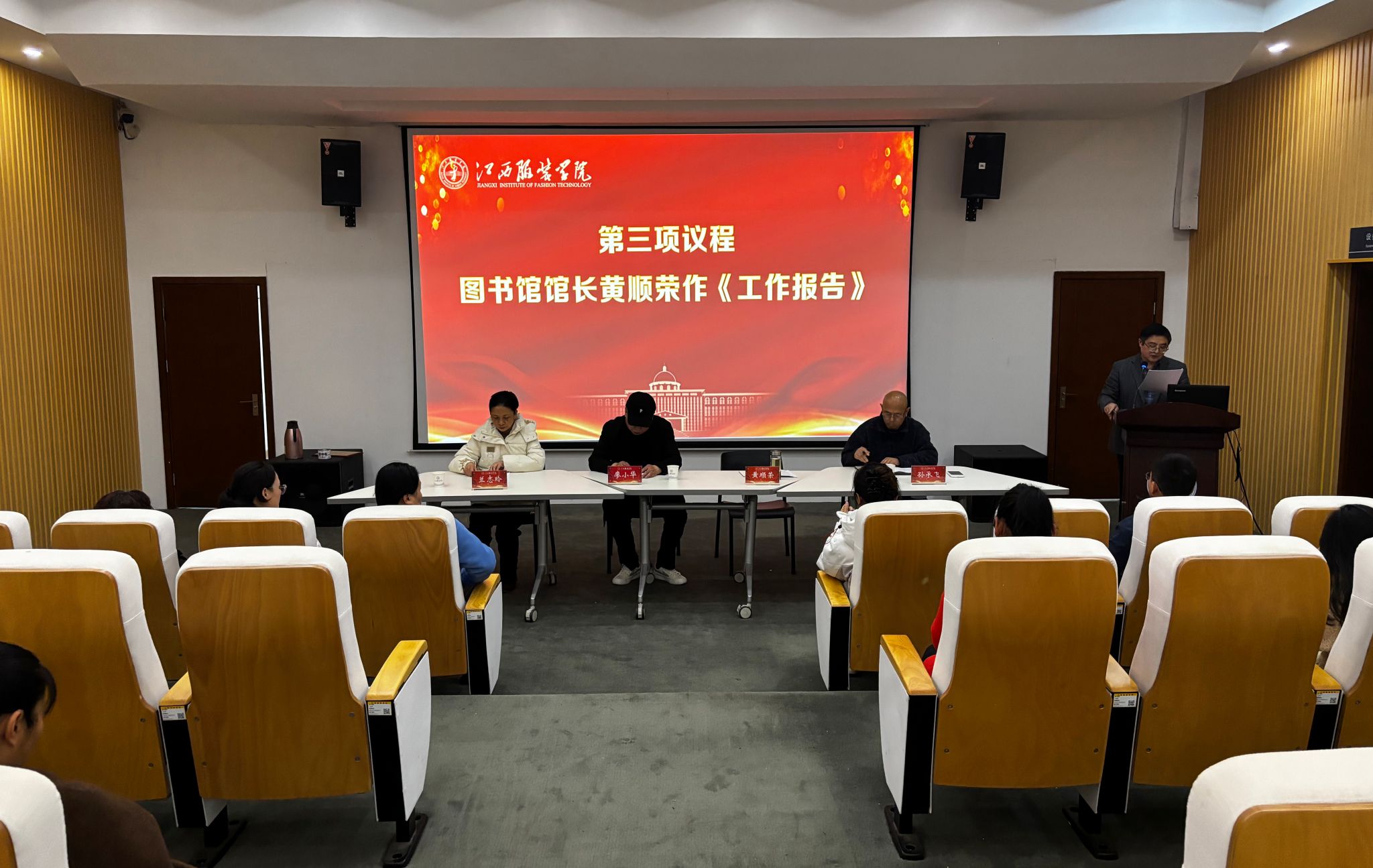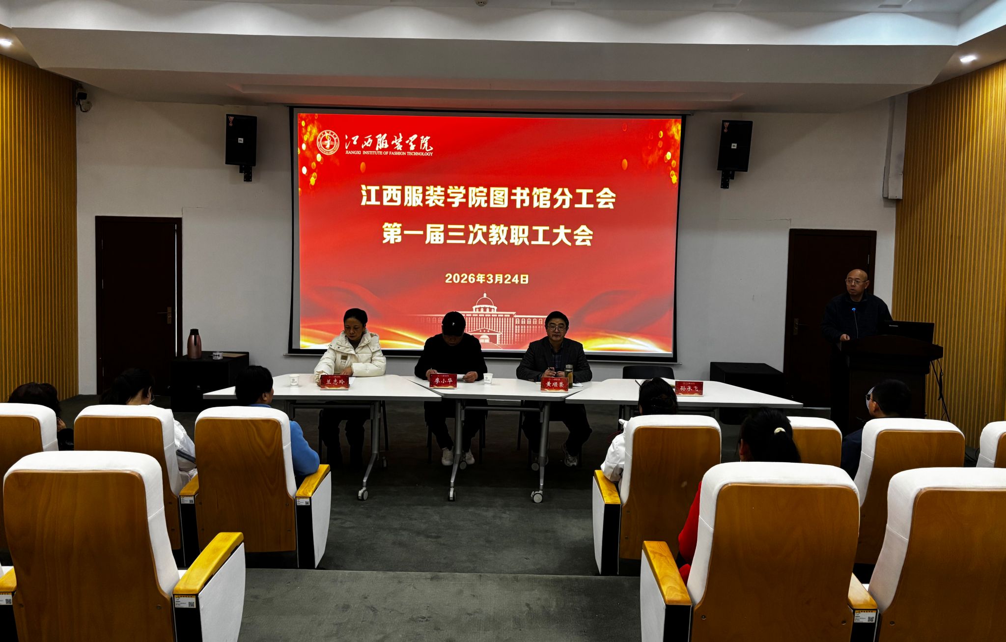3月24日下午,江西服装学院图书馆分工会一届三次教职工大会在图书馆召开。校工会常务副主席廖小华、图书馆馆长黄顺荣、图书馆分工会主席兰志玲及全体分工会会员出席会议,会议由服饰博物馆副馆长孙承飞主持。